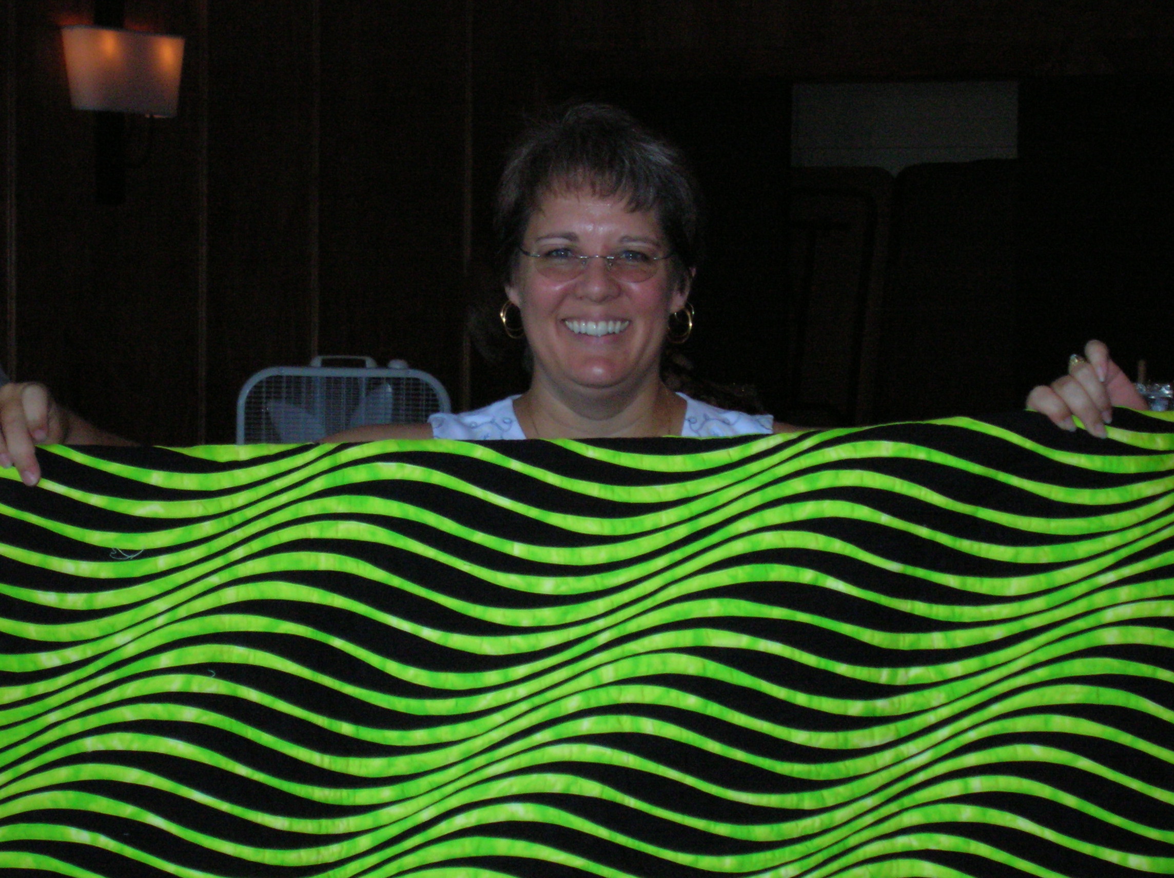 I met this quilter at the Anaheim Convention Center years ago. She was selling her book and plastic templates to make Drunkard’s Path. Unfortunately, the book is at home. I’m writing this at lunch at work and can’t give you her name.